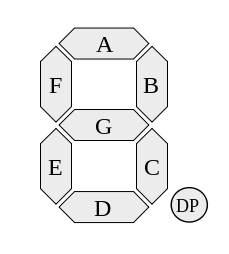 Az abcdefg a 7 szegmens konvencionális elnevezése a legfelső vizszintes szeegmens az a utána a többi az óramutató járása szerint a következő, végül a középső vizszintes szegmens a g jelű. Az orosz abc más sorrendű a b v g d e zs z hangoknak megfelelő.