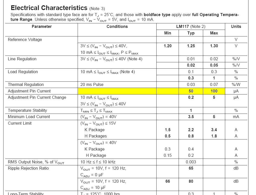 Az LM317 egy olyan fix feszültségű stabilizátor, aminek a kimeneti feszültsége 1,25V. Ekkora a feszültség a kimenet és az adjust lábak közt!