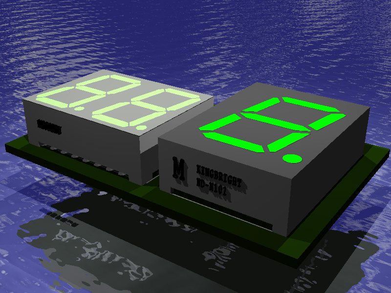 Az alkatrészek megalkotása kissé bonyolult (főleg attól függ, hogy mennyire részletes, élethű), elsősorban a POV-Ray modellezőt kell hozzá ismerni. (Rákeresve, biztos találsz róla leírást a neten.) Egy konkrét alkatrész megalkotására az Eagle 3D honlapján található dokumentációban van leírás. Ez a konkrét leírás az elinduláshoz segíthet, én is ebből készítettem az első alaktrészt. Aztán, ha a POV-Ray kicsit már megy a kész alkatrészeket felhasználva lehet sajátot kreálni. Néhány általam készített alkatrész vagy módosítás: Az első alkatrész, amit csináltam a fenti leírás alapján a baloldali 7 szegmens kijelző (a jobb oldali eredeti, csak a szegmensek színét módosítottam) Aztán egy relé, (aminek a szélei le vannak lerekítve ) mellette egy DO34-es dióda, ennek a színén módosítottam, aztán meg egy dugipanel része. Egy elem, teljesen sk., a mellette lévő IC-n a logó megjelenítése és a felirat egy módosítás eredménye. Korábbi hozzászólásomban mutattam már egy LCD-t és a Higginsnek készített panelen is jó pár módosítás és kreálmány van. (Mindegyikre jó pár órám ráment )