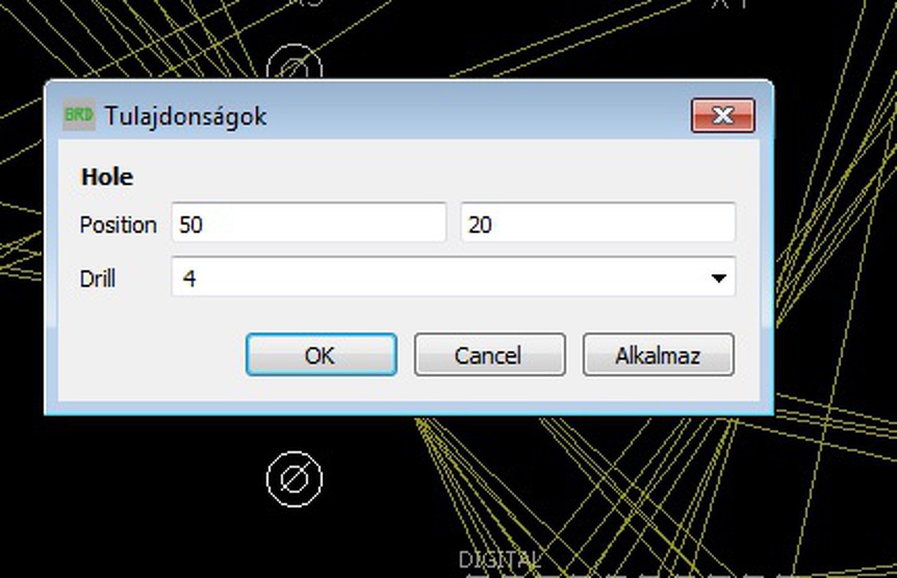 Nálam nincs ennyi adat ha a furat tulajdonságait nézem. A HOLE gombbal készitettem a furatokat, mivel nem kell forrasztani , azokba távtartó megy csak