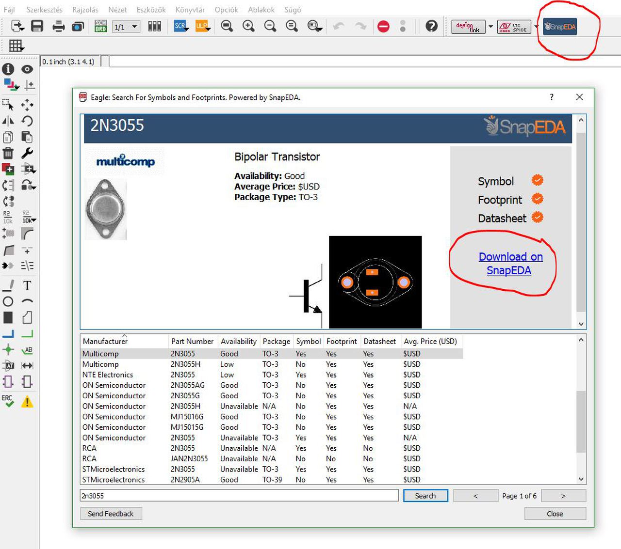 Eagle alkatrész-könyvtárak: http://www.snapeda.com