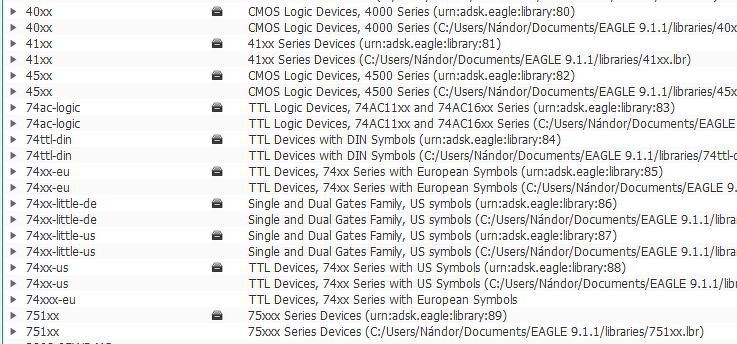 Kérdésem a következő: Telepítéskor automatikusan a program telepít egy alkatrészbázist - c:\EAGLE 9.1.1\lbr\ltspice\ illetve a c:\EAGLE 9.1.1\cache\lbr\ mappákba. Nekem is van egy alkarész adatbázisom, amit a c:\Users\MyName\Documents\EAGLE 9.1.1\libraries\ mappába teszek. Megadom ezek után a saját alkatrész könyvtár helyét a „Control panel”-ben, és újra indítom az EAGLE programot. Érdekes módon két libraries könyvtár jelenik: „libraries” és „Maneger libraries” könyvtárak a „Control panelben”. A „Maneger libraries” könyvtárat használaton kívül tudom helyezni, hogy csak a „saját” látszódjon, ha kapcsolási rajzot készítek. De ha újra indítom az EAGLE programot, mindig mindkét libraries könyvtár automatikusan betöltődik. A „Maneger libraries” könyvtárat hol lehet letiltani, hogy eleve ne töltődjön be? Zavaró a kapcsolási rajz készítésekor, hogy némelyik alkatrész duplázva van.