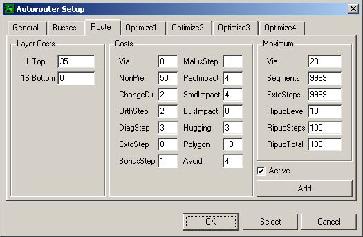 Valaki eltudná magyarázni a képen (autorouter setup) látható beállítások mit állítanak, mi a szerepük? Ha lehet tételesen! Kiváncsi lennék rá, lehet vannak még itt lehetőségek a finom hangolásra. Köszi.....