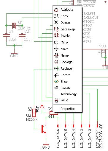 Az alkatrész típusának mérete így módosítható: Kattints a Value billentyűre, majd a jobb egérgombbal az adott alkatrész típusára, mondjuk egy IC nevének szövegére. A megjelenő menüben legalul találod a Properties-t, kattints arra, a megjelenő párbeszédablakban pedig a Size mezőben módosítod méretet. Az alkatrész nevét hasonlóképpen módosíthatod csak az első lépés a Value hlyett a Name billentyű lesz.