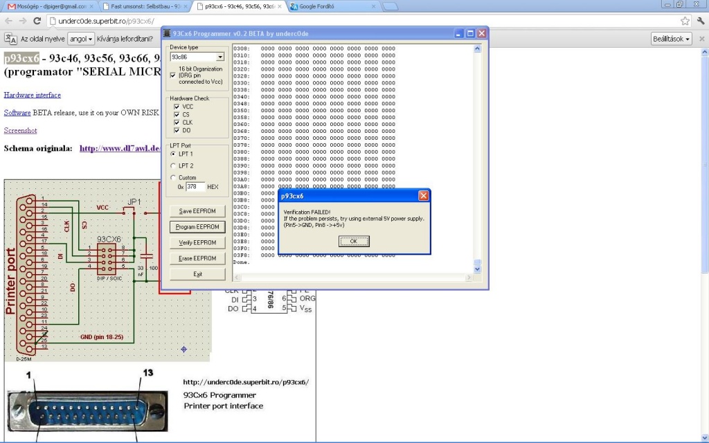 Építettem egy LPT portos írót nem tudom mi baja lehet kipróbáltam sokféle képen de valami nem jó ha nincs benne az IC vagy nincs bedugva az égető akkor F-eket olvas gondolom ugye az ürest jelent viszont ha benne van az IC akkor 0-at olvas ki ebből gondolom, hogy valamilyen módon csak komunikál az IC-el. Ha megpróbálom írni akkor elkezdi írni és a végén amikor vissza olvassa megint 0-kat olvas ki és ugye azt írja, hogy nincs tápellátás az IC felé bár a led világít benne ebből gondolom, hogy kap táp feszültséget lehetséges, hogy az IC nem lenne jó?