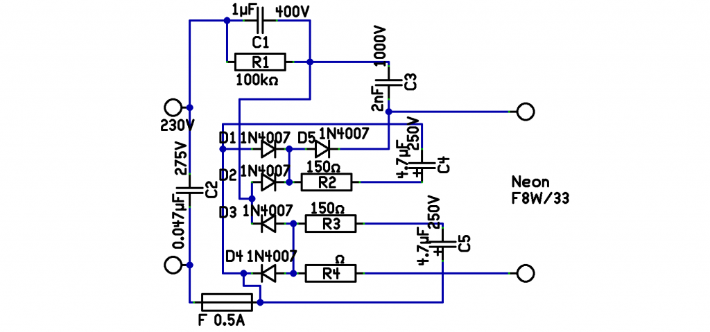Én úgy tudom, hogy a neon csőnek is kell az a 5-600V gyújtó feszültség.