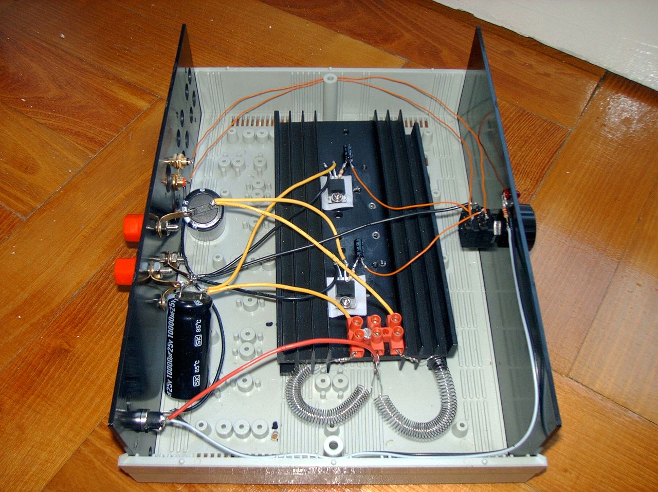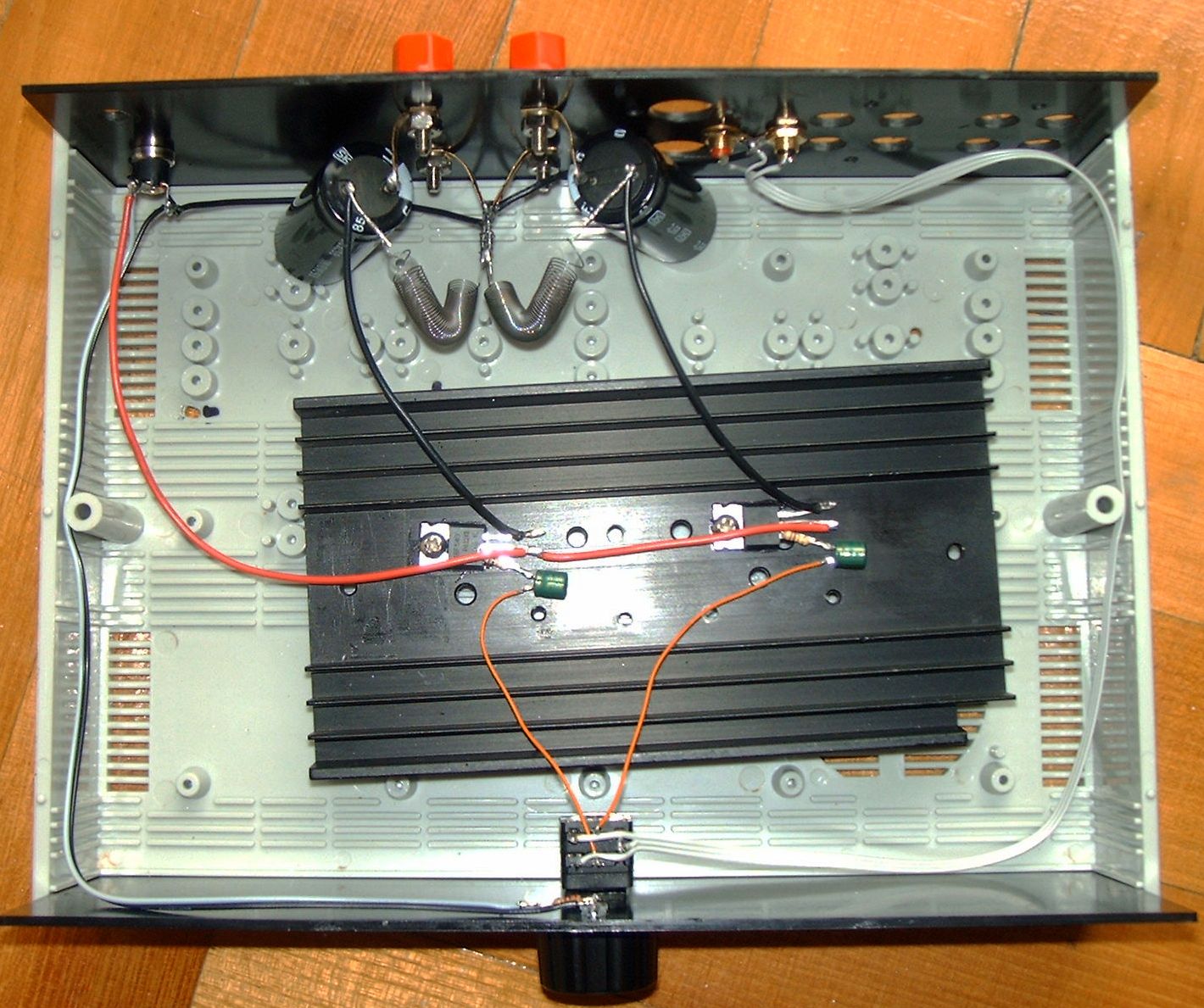 A jelenlegi állapot. Most ezt hallgatom, nagyobb be és kimenő kondival sokkal jobb. (Így sokkal kisebb ellenállással áramlik át rajta a zene éterikus rezgése.)