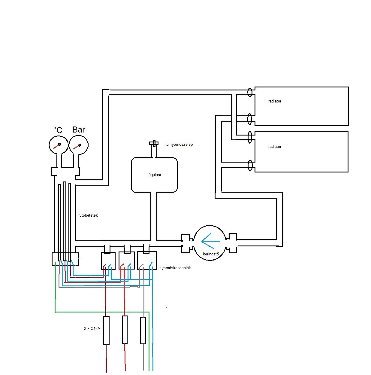 Amúgy egy darab fűtőbetétem van 7.5kW-os. Ami 3x2500W-os cekászt tartalmaz. Tehát mehet egy két vagy 3 fázisról is. A kérdésem az lenne, hogy milyen védelmi berendezések kellenének egy esetleges túlmelegedés, vagy túlnyomás leszabállyozására. Hol lehet olyan nyomáskapcsolót (vagy mi alapján keressek rá?) amit ha mondjuk becsavarok a csőbe, akkor leold? Mert oké én elképzeltem, hogy összecsavarozom a kazánt dobok rá egy keringetőt, tágulásit, hőmérőt, túlnyomószelepet, barométert, meg 3 darab kismegszakítót. De akkor így az első cekész fázisára kéne kössem a keringetőt és ha üzemel a rendszer akkor az 1. fázisnak mindenképp mennie kell pl estére.