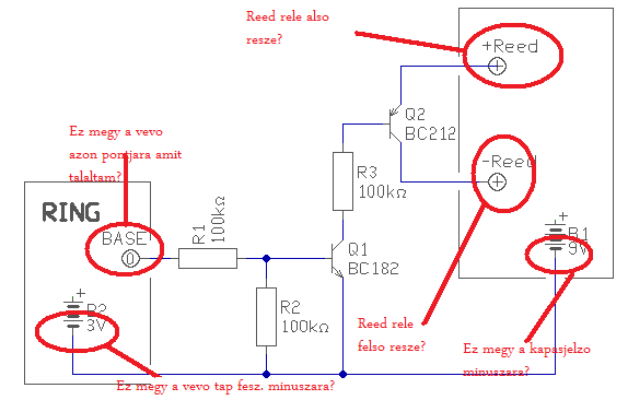 Meg lehet oldani. Az R3 ellenállást kicseréled 10kohm-ra, a Reed+ jelűt felkötöd a +12V-ra, a Reed- jelűt rákötöd a sipoló + kivezetésére. A sipoló - kivezetését, a 12V negatívjára. természetesen a 12V negatív pontja össze van kötve a 3V negatívjával. Annyi a difi, hogy ha a Bázison a jel még is valami impulzussorozat lenne, akkor az hallatszani fog a sípolón.. De akkor lehet továbbgondolkodni. (Mi az hogy leégetted? Főzted és odakozmált?) üdv! proli007 |