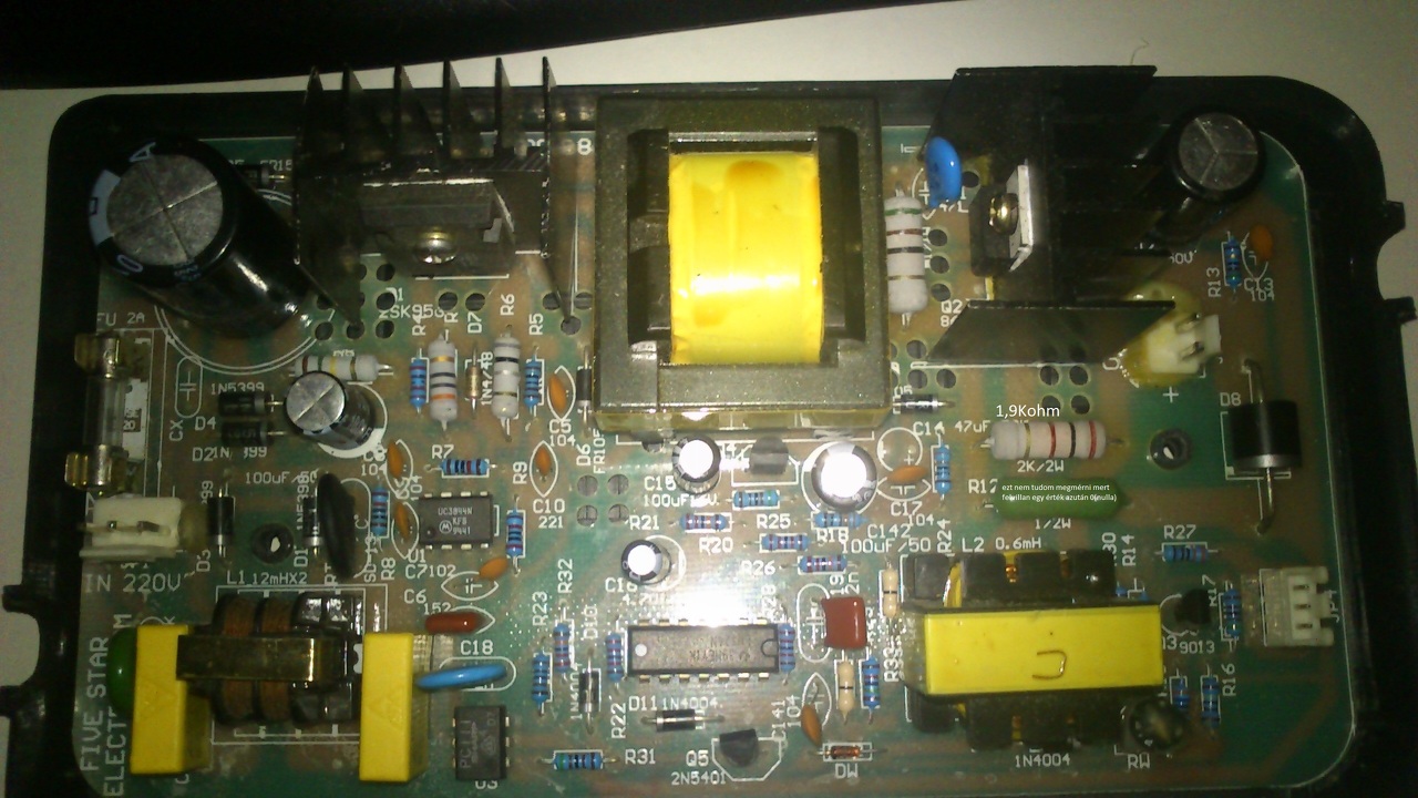 Az R12-es ellenállás értékét nem tudom mert a műszer felvillan egy érték ezután 0(nulla) próbáltam több tartományban is de ugyan az,felette lévő 1,9Kohm-mot mutat a műszer.