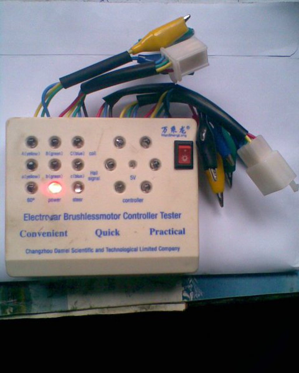 Sziasztok! Nem tudom tudna valaki válaszolna pár kérdésemre. Kezdő vagyok az elektromos robogók hibabehatárolásban, de bele kellett vágnom. Vettem egy a képen látható teszter. Ki tudtam vele mérni a gáz hall jeladókat, a motor fázis tekercseit, és hall jeladóit. Próbáltam az elektronikát is tesztelni, de lehet, hogy valamit nem jól csináltam. Én az elektronikán rajta hagytam a tápot, a gázkart, a fázis vezeték és a hall jeladó bemeneteit pedig a teszter a "controller" feliratú fázis és hall csatlakozóihoz kötöttem. A ledek egyáltalán nem villogtak. Jól csináltam?