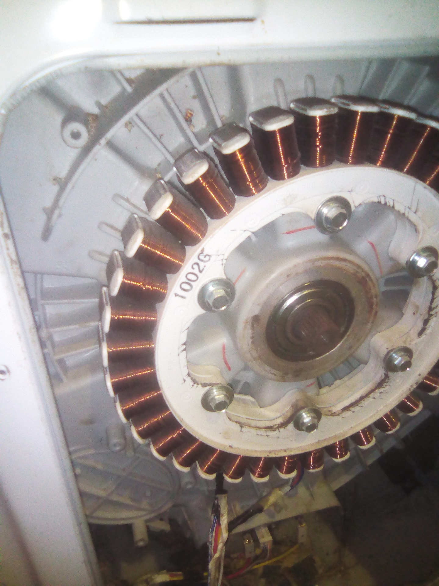 A tekercseket nem néztem még.Három kivezetése van,mint a gyári elektromos bicikliknek,illetve a jeladók kivezetése.A forgórész közepe kivehető,120 fokban van 3 furat,így beépíthető akár kerékbe is,illetve az állórészt egy lemezre felfogatva..De ez csak egy lehetőség több közül.