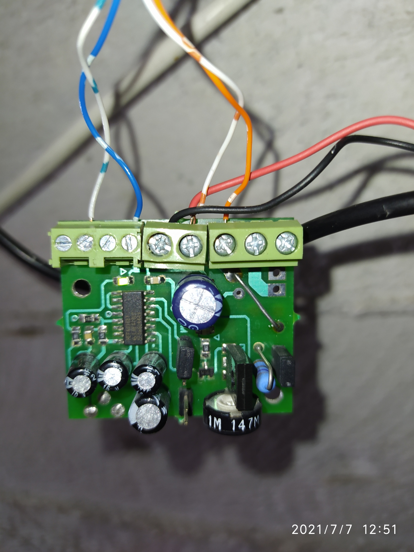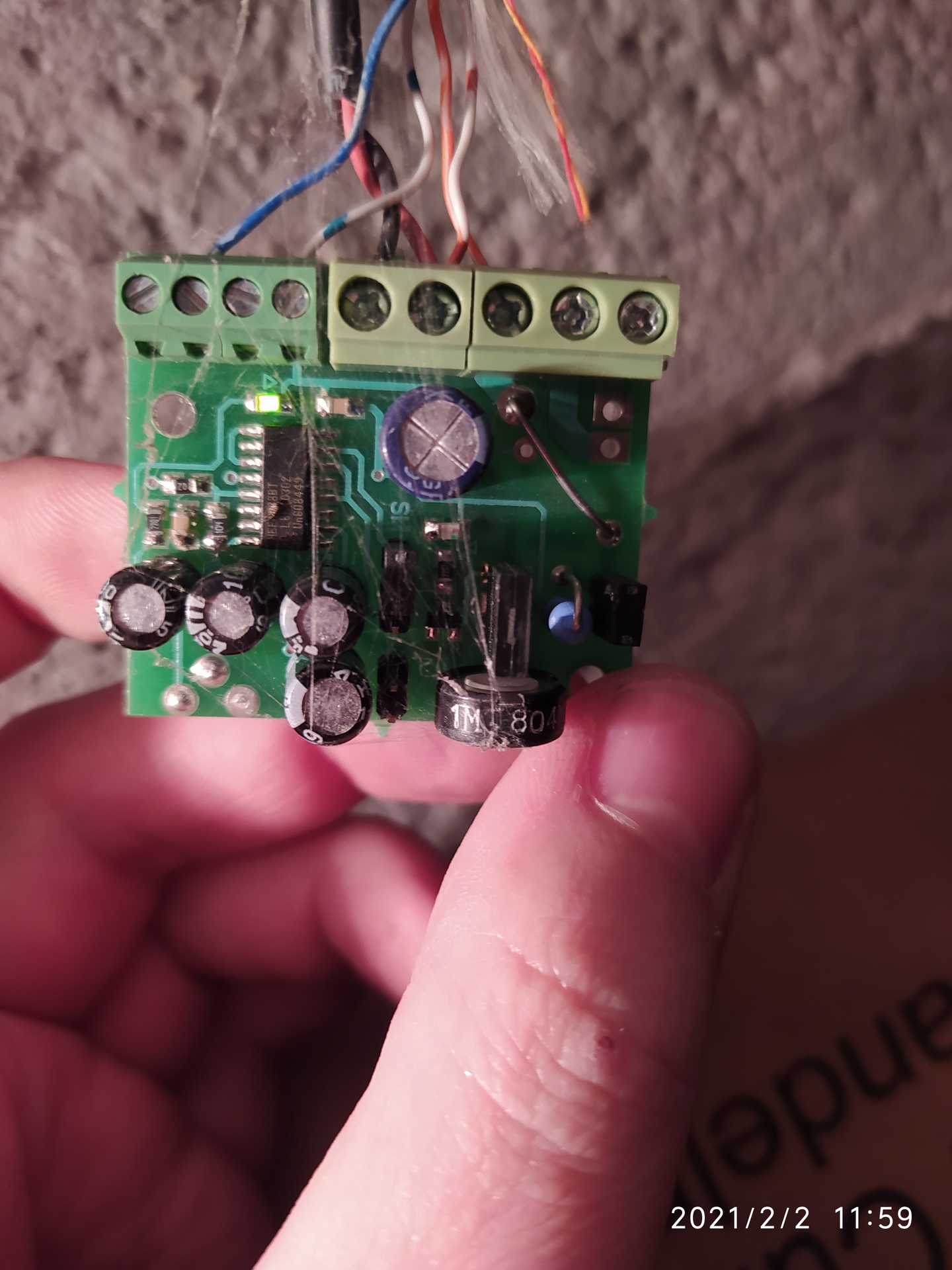 Itt a kérdéses modulról egy jobb kép. Működik látszólag rendesen és a feszt is kiadja. Még egy másik táppal megpróbálom, hátha a mostani rendetlenkedik vagy esetleg kevés az 1 amper a mágnesnek.