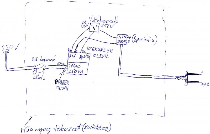 Először is Tomi-nak megköszönném az a kapcsolási rajzot! A többieknek köszönöm a hozzászólásokat, javaslatokat. Valójában amit én építettem, az egy sima leválasztó trafó, ami primer oldalon 220 V, és szekunderen 110 V, és 84 V. A trafó 250 VA-es. Van rajta egy váltókapcsoló, mert igazából nem tudom, hogy melyik az a feszültség, ami alkalmas a kábításra. Mérések alapján jónak tűnik, de szeretném kérni a véleményeteket, hogy ez használható-e a gyakorlatban? Előre is köszi a segítségeteket!