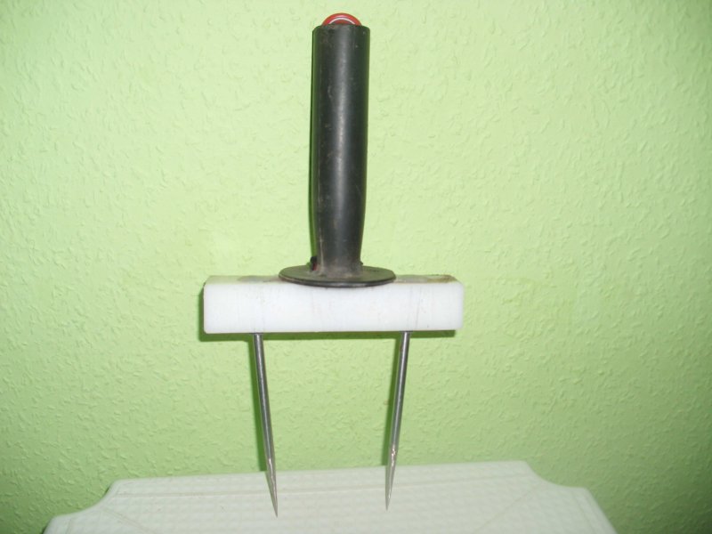 Fogj egy ellenállásmérőt és a mérőcsúcsokat szorítsd, ahogy bírod. Elég nedves kézzel is nehezen mégy 10 kOhm alá. Amelyik disznónál nem tudsz 1 kOhm alá menni, el se kezd a kábítást. ( a disznó tudja a Ohm-törvényt) Ezért kell nedvesíteni és jó erőse nyomni a villát (fogót, szúrómarkolatot). Ez embernél is biztos elérhető, de az már nem a "véletlen műve". |
