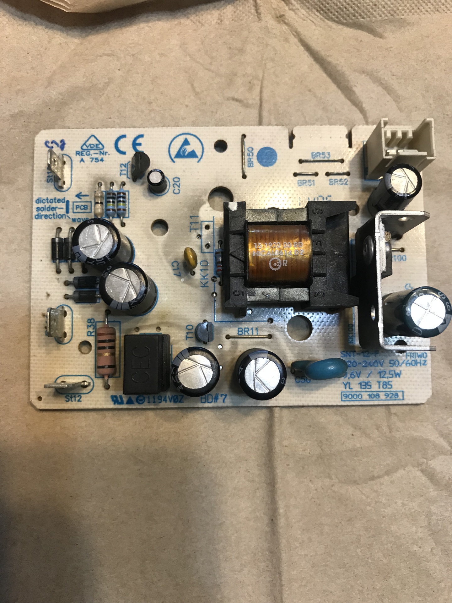 A héten nem nagyon volt időm, de ma a 0,68uf szürke kondit megmértem (ld.fotó) , cseréltem, s a sütő tökéletesen működik. Hálás köszönet a segítségért! Siemens HTHE76s kerámia kombi üvegkerámialapos tűzhelyAz egyik tranyó KSi 44, alatta G17, a másik ismeretlen még a jelőlése is. Jó lenne ha valaki ráismerne. Van valakinek ilyen komplett tápja ami a képen szerepel? 15.1920.505-73 9.6v / 12.5w