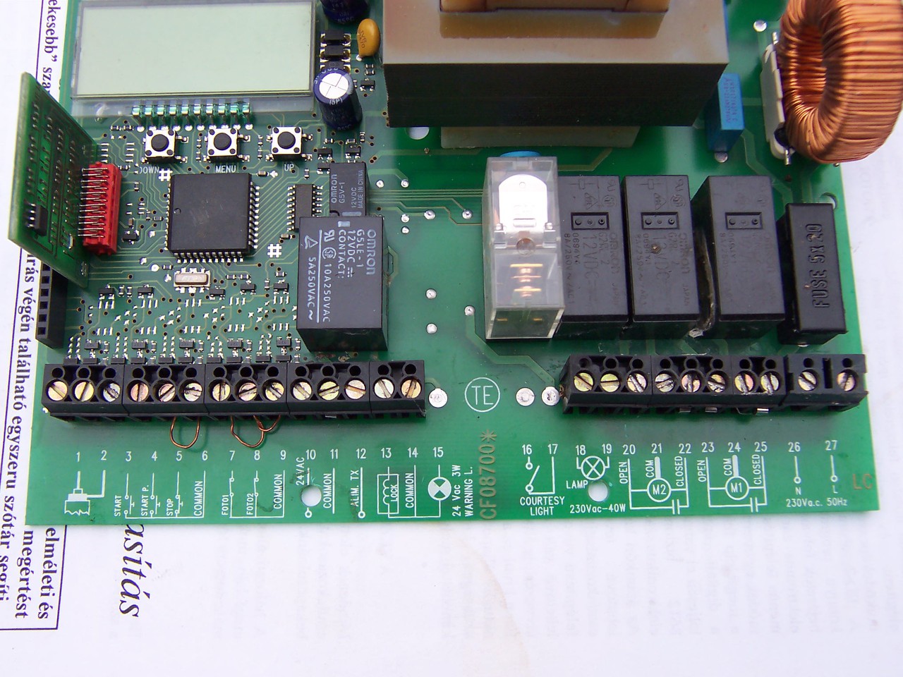 Vamna a progra a - + és a set gombok azokra reagál, melyik kapu szárny mettől meddig nyiljon azt is . El lehet a gombok segiségével indítami a távok programozását ,de nem fejezi be,mert a távon is meg kéne nyomni hozzá egy gombot de ez már nem megy mivel hiába nyomom a gombokat a távon semmi nem történik.