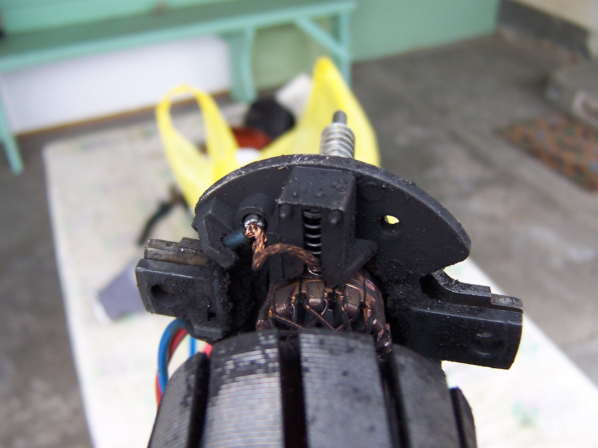 Nagyobb kefével, ez a tartósabb. Viszont csapágyastól mindenestül jön ki a fogórész, sajna a csapágyat le kell húzni ahhoz, hogy a kefét ki lehessen cserélni, nagyon szoros illesztéssel van föltéve, ménykű nehéz szétszedni.