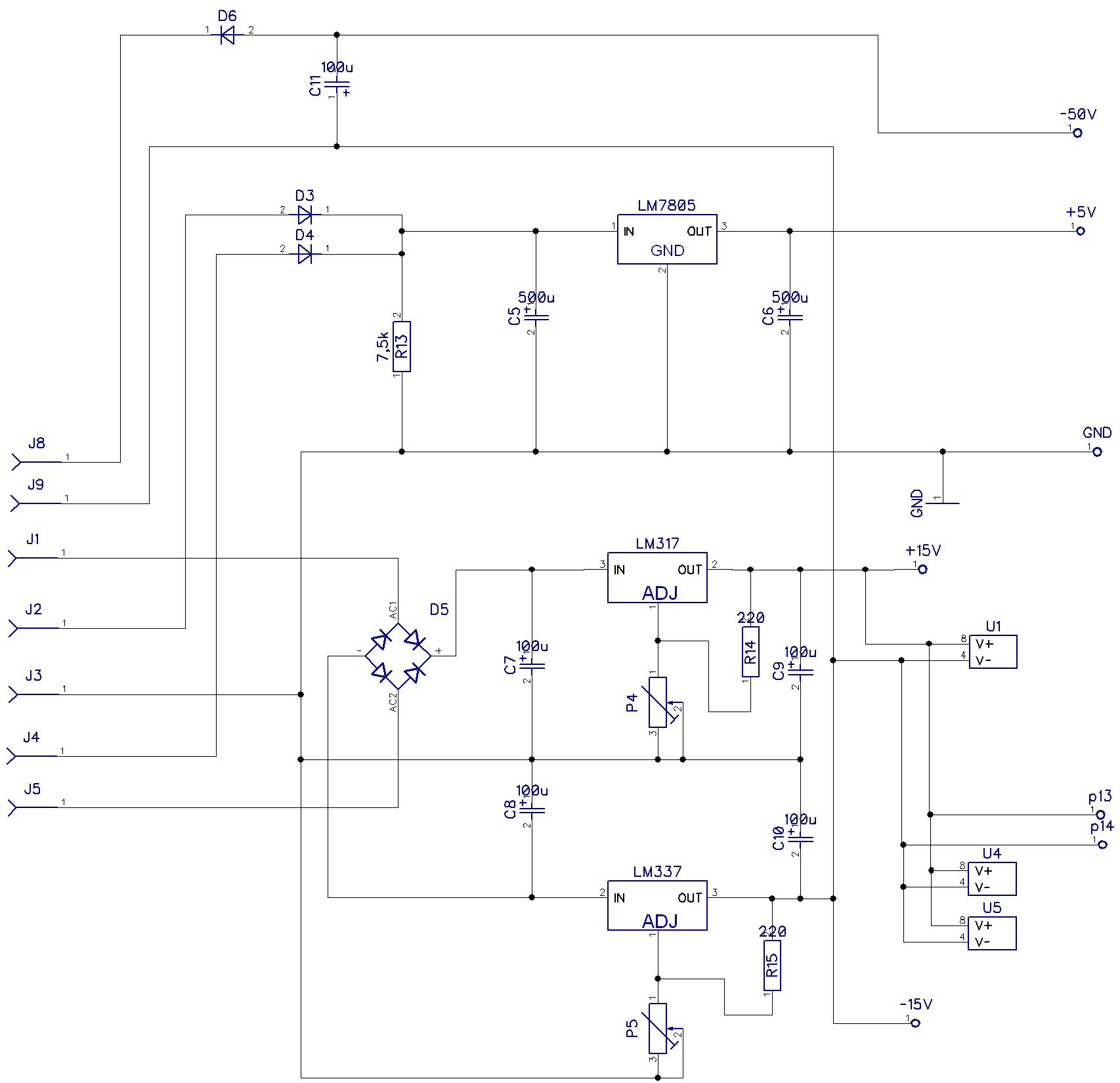 +15V, -15V, +5V ezeket a lehető legegyszerűbben oldottam meg egy-egy IC vel, LM317,LM318, LM7805,