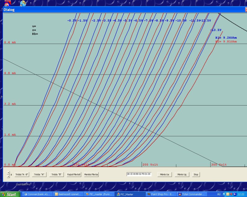 Szóval, Ug2 feszültség is van már és szabályozni is tudom(mármint programból), ami nagyon lényeges változás, hogy az anódáramot az anódellenálláson mérem. Ez elvileg jobb mint a katódban mérni az áramot, de a gyakorlatban még nem vagyok erről meggyőzve.