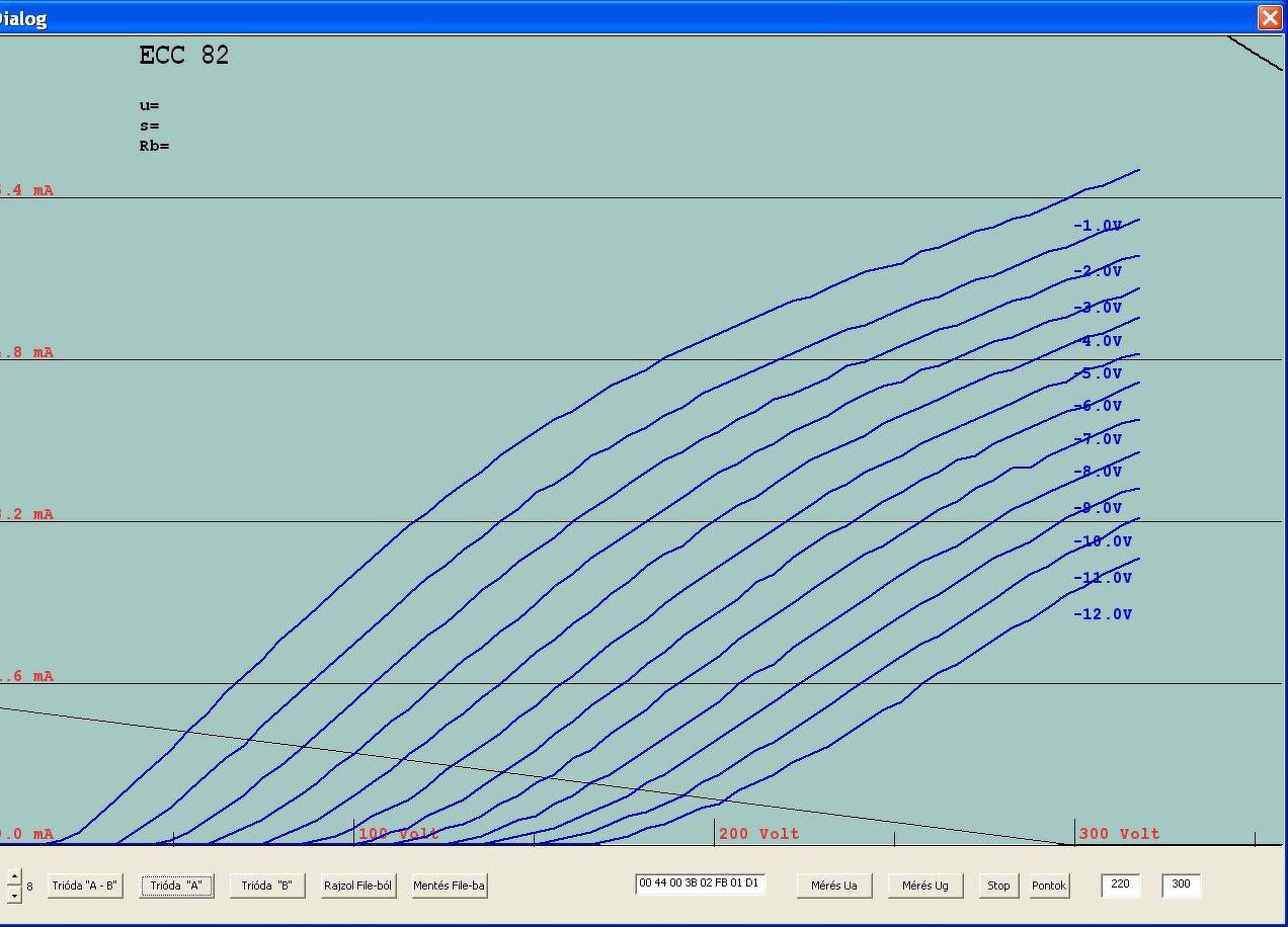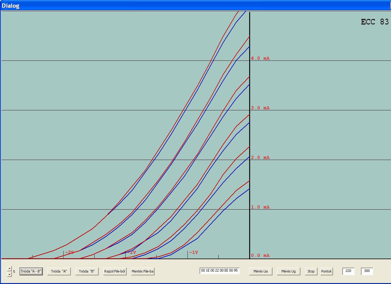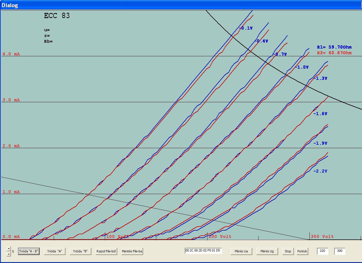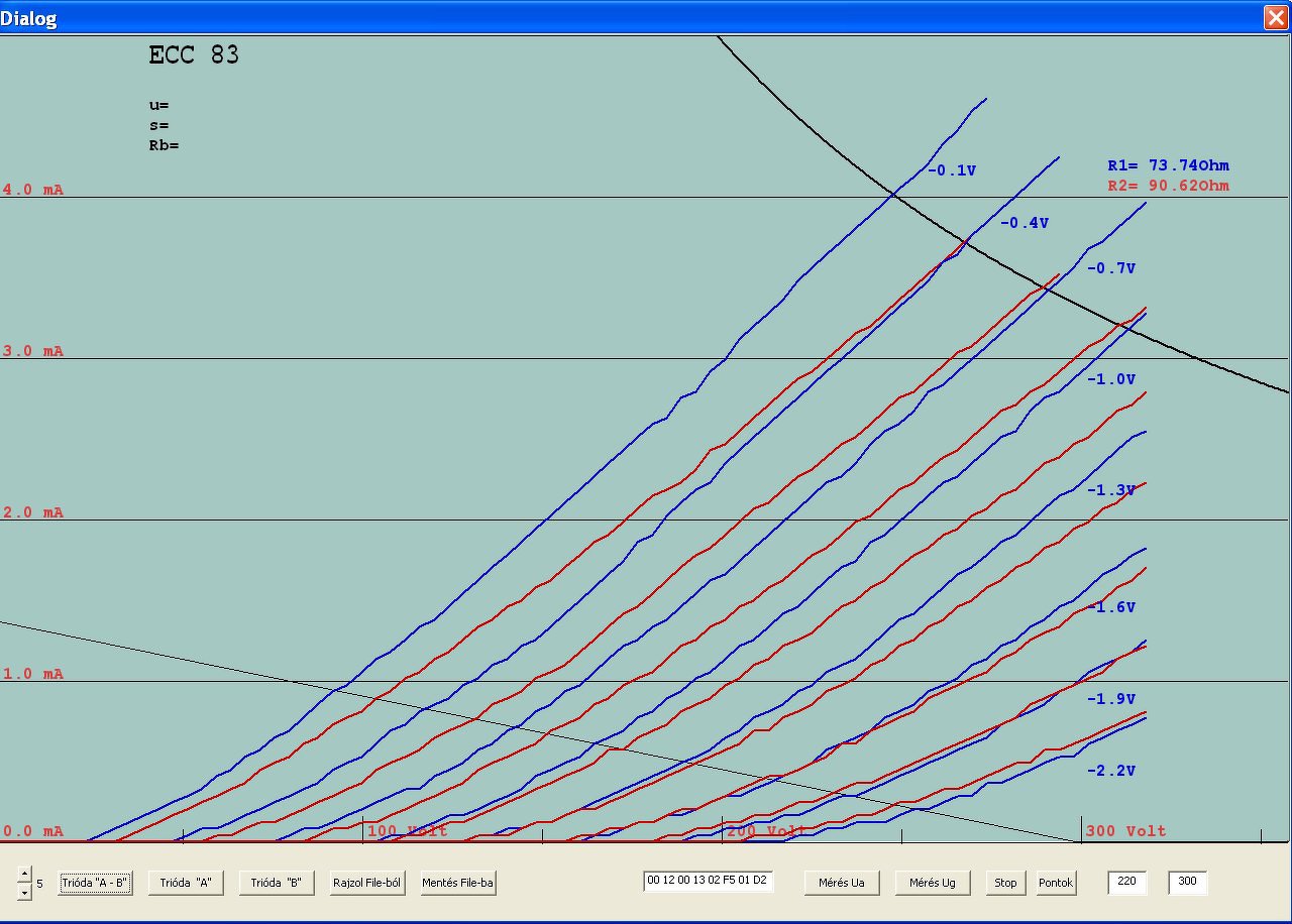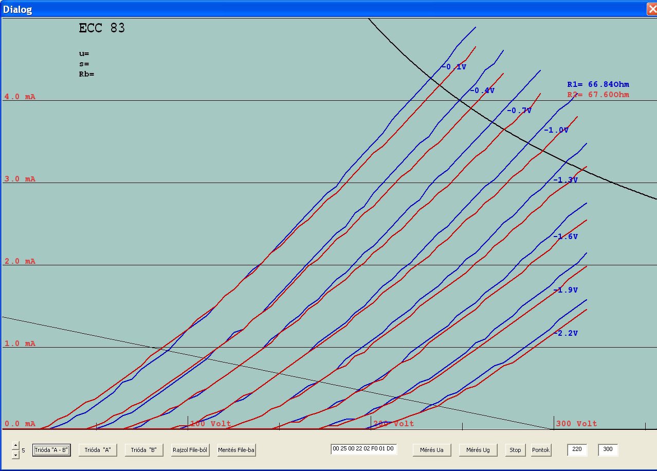 A nagy anódárammérő tervezés mellett, kikapcsolódásként készítettem néhány ECC83- karakterisztikát. Vettem 2 új, egy EH és egy Tungsol csövet és előkaptam egy jó öreg Tungsramot,