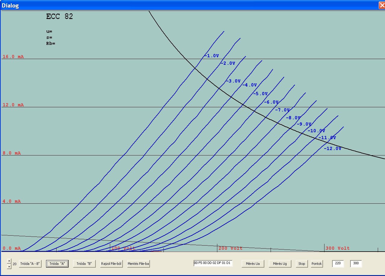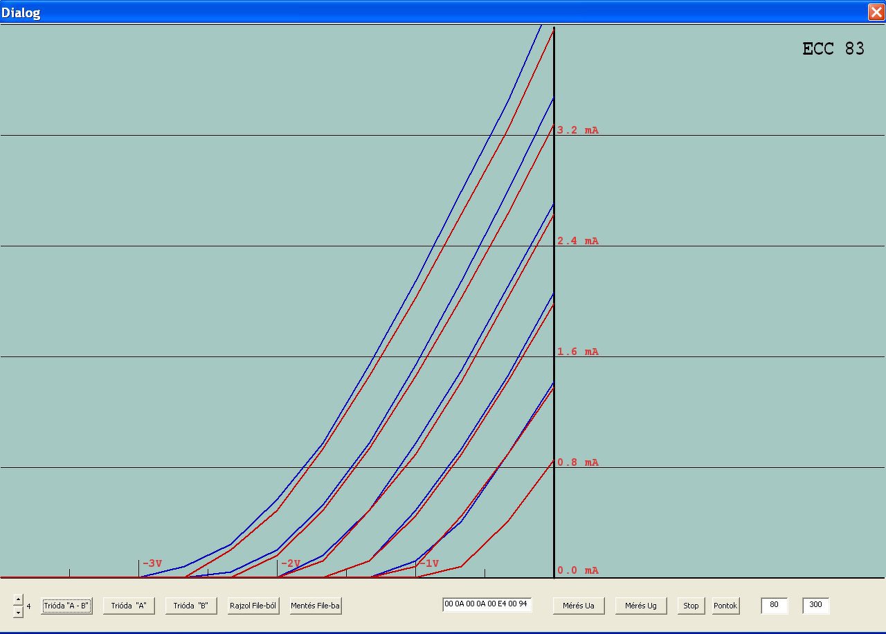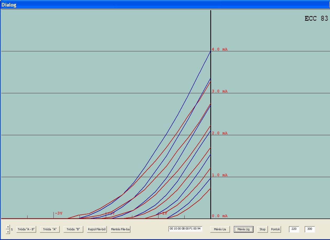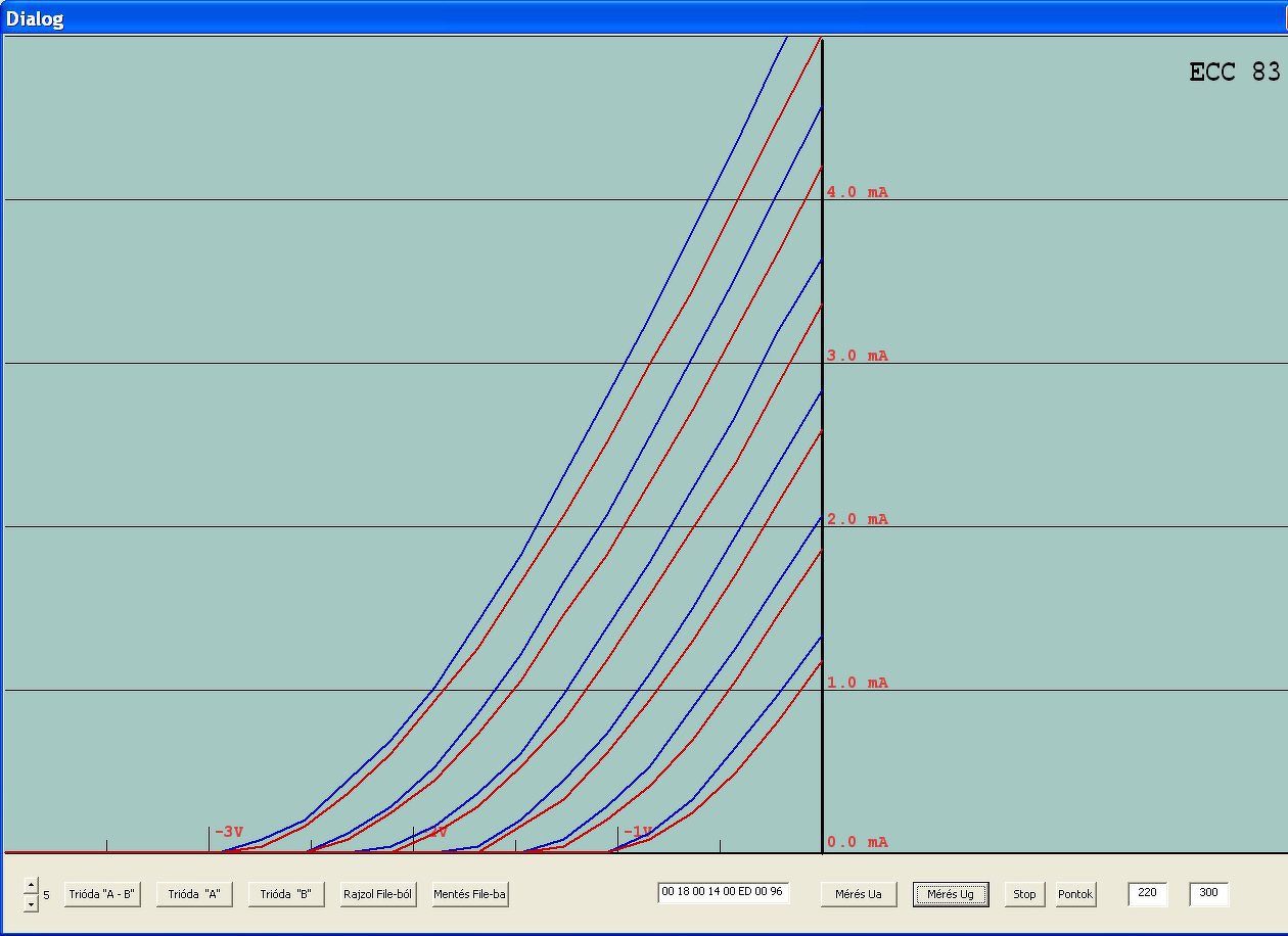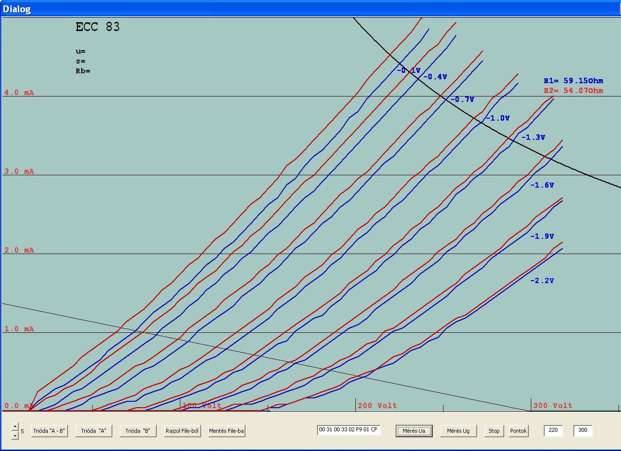 A nagy anódárammérő tervezés mellett, kikapcsolódásként készítettem néhány ECC83- karakterisztikát. Vettem 2 új, egy EH és egy Tungsol csövet és előkaptam egy jó öreg Tungsramot,