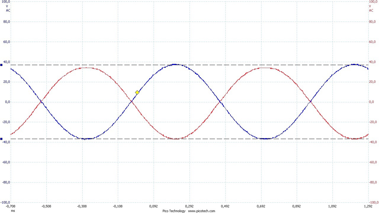 Az első ábrán még alig látható a két fél közti eltérés, pedig ez már egy 6L6 -os végfok majdnem teljes kivezérlésének megfelelő jelszint.