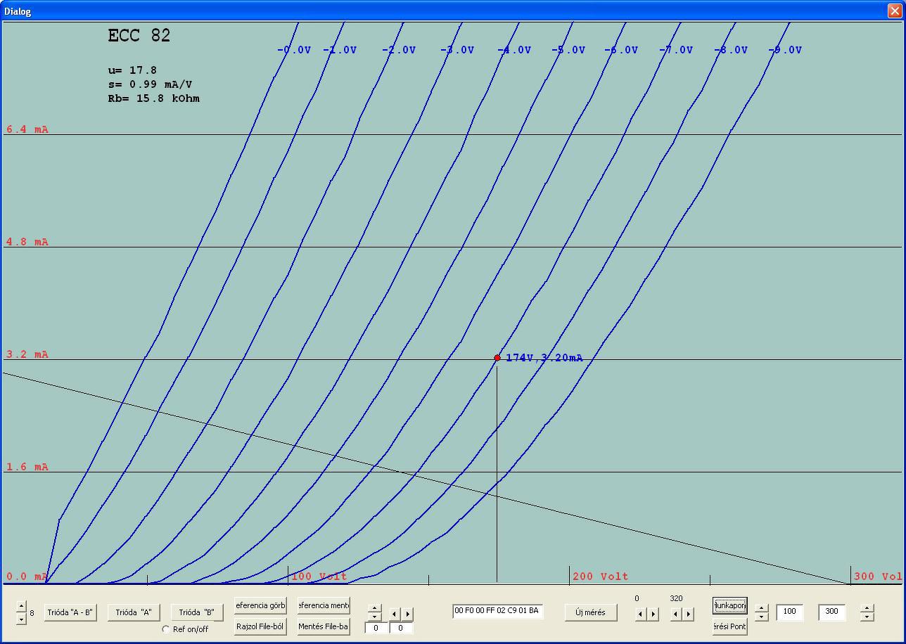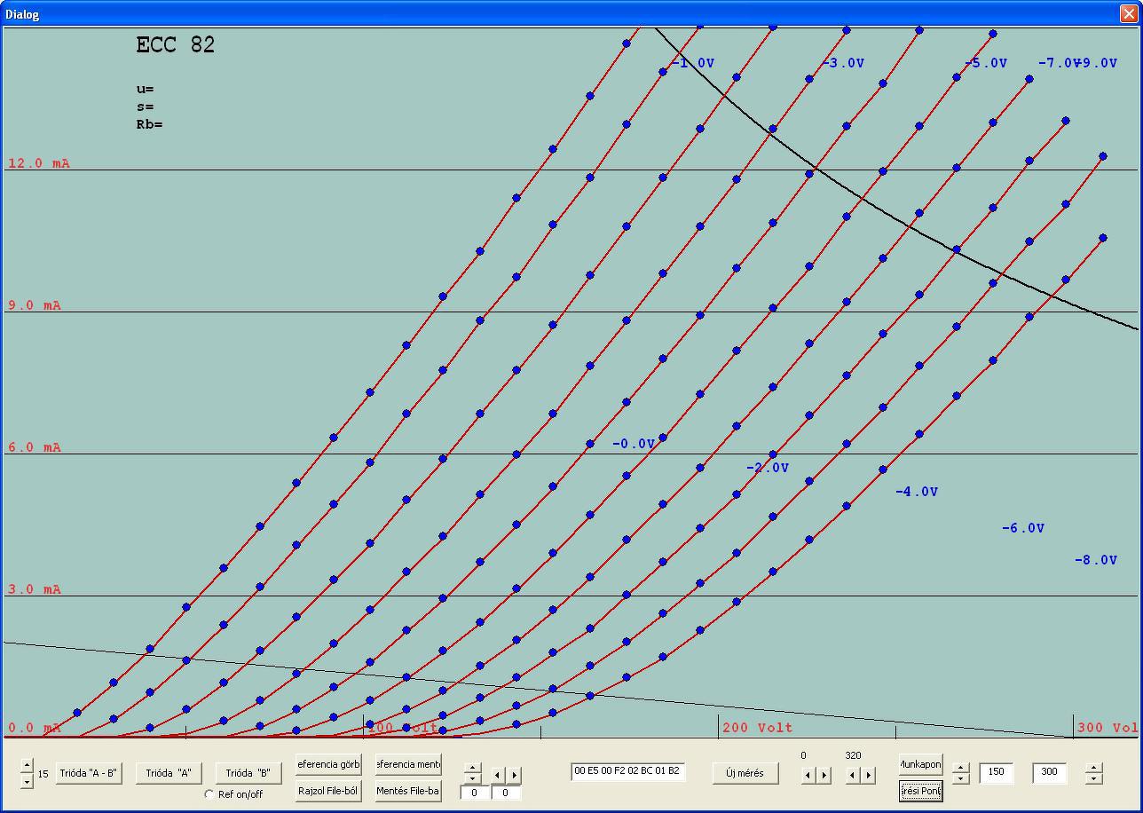 Viszont végig gondoltam hogyan is lehetne megcsinálni és azt látom, hogy egy cső %-os állapotát az Ug/Ia karakterisztika értékéből adják meg. pl.: ECC83 1,2mA-,250V-,-2.0V vagy 0,5mA, 100V, -1.0V vagy ECC82 10,5mA-,250V-,-8.5V vagy 11,8mA, 100V, -0.0V typical characteristics címen. Mivel ezekből a görbékből a gyártó csövenként mindössze általában 4-5 görbét ad meg, ezeknek az adatoknak a bevitele már nem egy nagy feladat. A statisztikai módszert végül is elvetném, mert egy referenciagörbének az eredeti/gyári értékeket kell tartalmaznia.