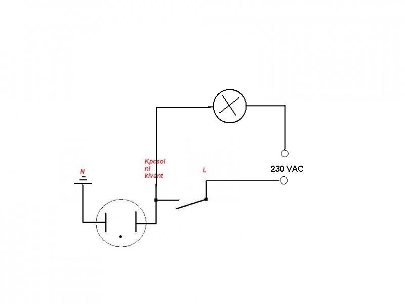 Vagyis ami a Te rajzodon a kapcsoló bal lábát kösd a rajzbéli dugvilla felső ágához.