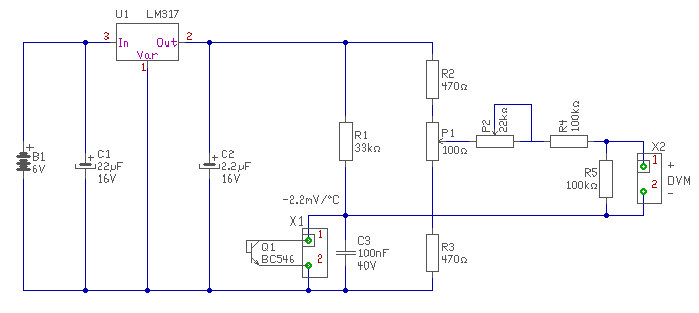 Zárjuk inkább rövidre a dolgot. Digitális multiméterhez az egész áramkörre nincs szükség. Azzal csak rontunk az eredményen. Bőven elég egy feszültség stabilizátor, és a "hőérzékelő tranyó" bázis-emitterének hőfokfüggése. A híd persze szükséges, hogy a nullpontot és a 1mV/°C kimeneti feszültséget beállíthassuk. üdv! proli007