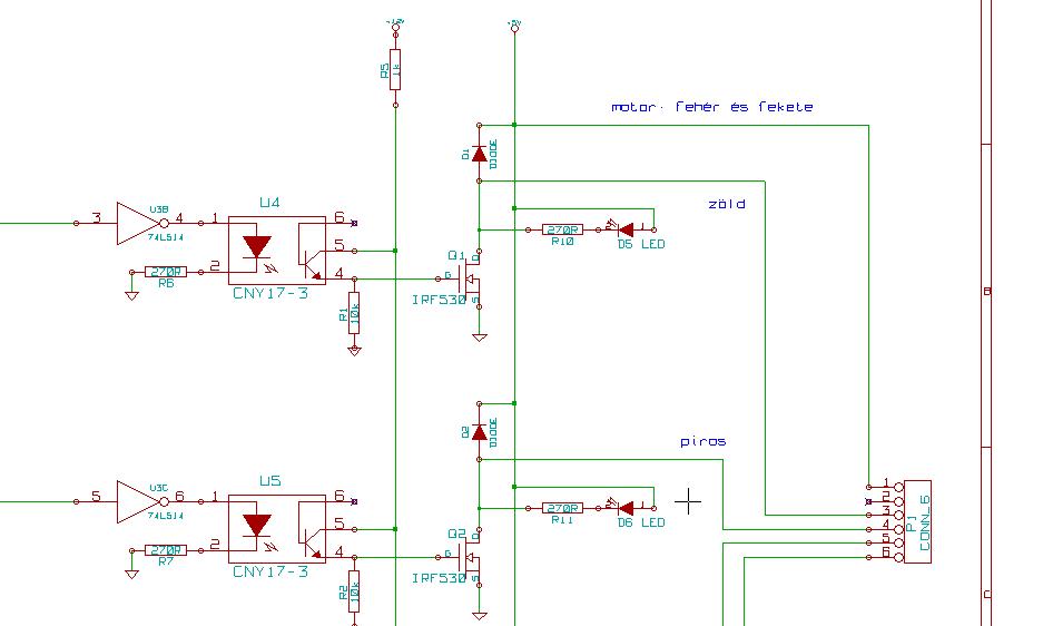Üdv! Ha tervezed a panelod, ne feledkezz meg arról, hogy az optocsatolók utáni föld az külön van, még véletlenül sem közös az íc-k földjével, és a motor vezetékei jó szélesek ( 2 mm ) legyenek a nyákon!