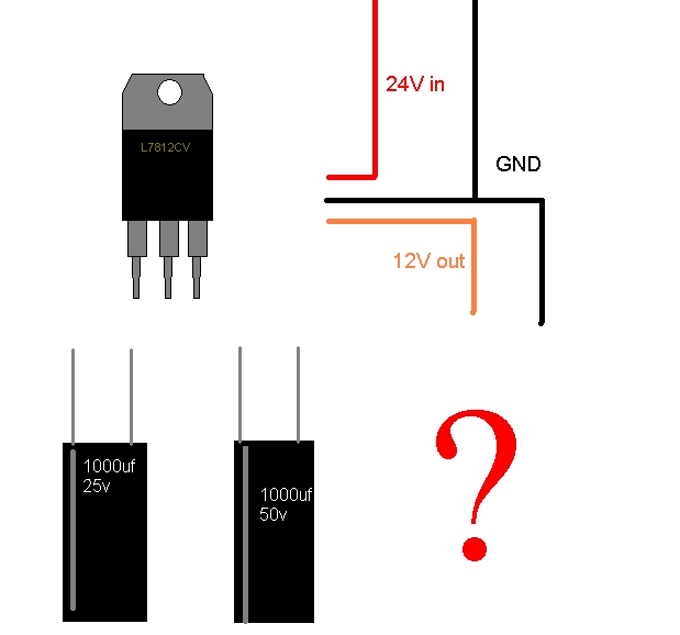Adottak a következő alkatrészek: L7812CV 25V 1000uf 50V 1000uf