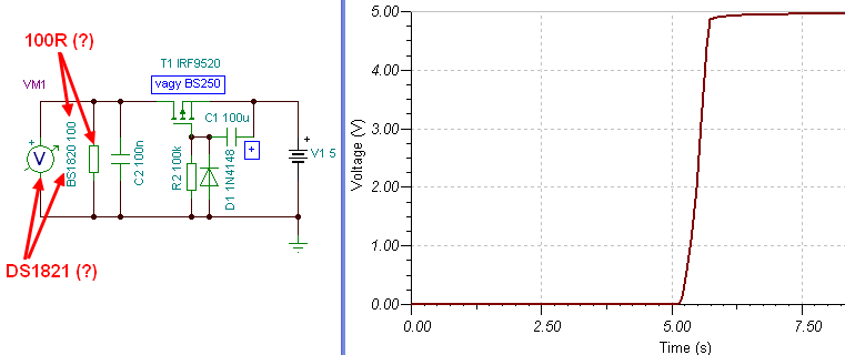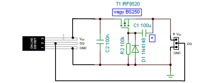 - A BSS84 jobbnak látszik. - Ezzel a bekötéssel, egy probléma van, hogy a DS ugyan később kapja meg a tápot, de a DQ lába azonnal. Hogy ezt hogy tolerálja, nem tudom.. - Esetleg megpróbálhatod "alulról" a negatív ágon kapcsolni a DS-t, egy N-csatornás Fet-el. ekkor ez a gond nem állfenn.. üdv! proli007 |