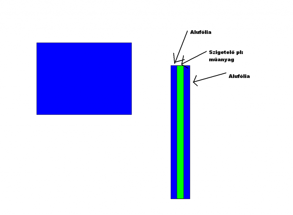 Lényegében egy házi kondenzátor. Nos a lényeg hogy lehetne-e ezt egy lap formájában megcsinálni. Csak mivel a palack elég babrálós!