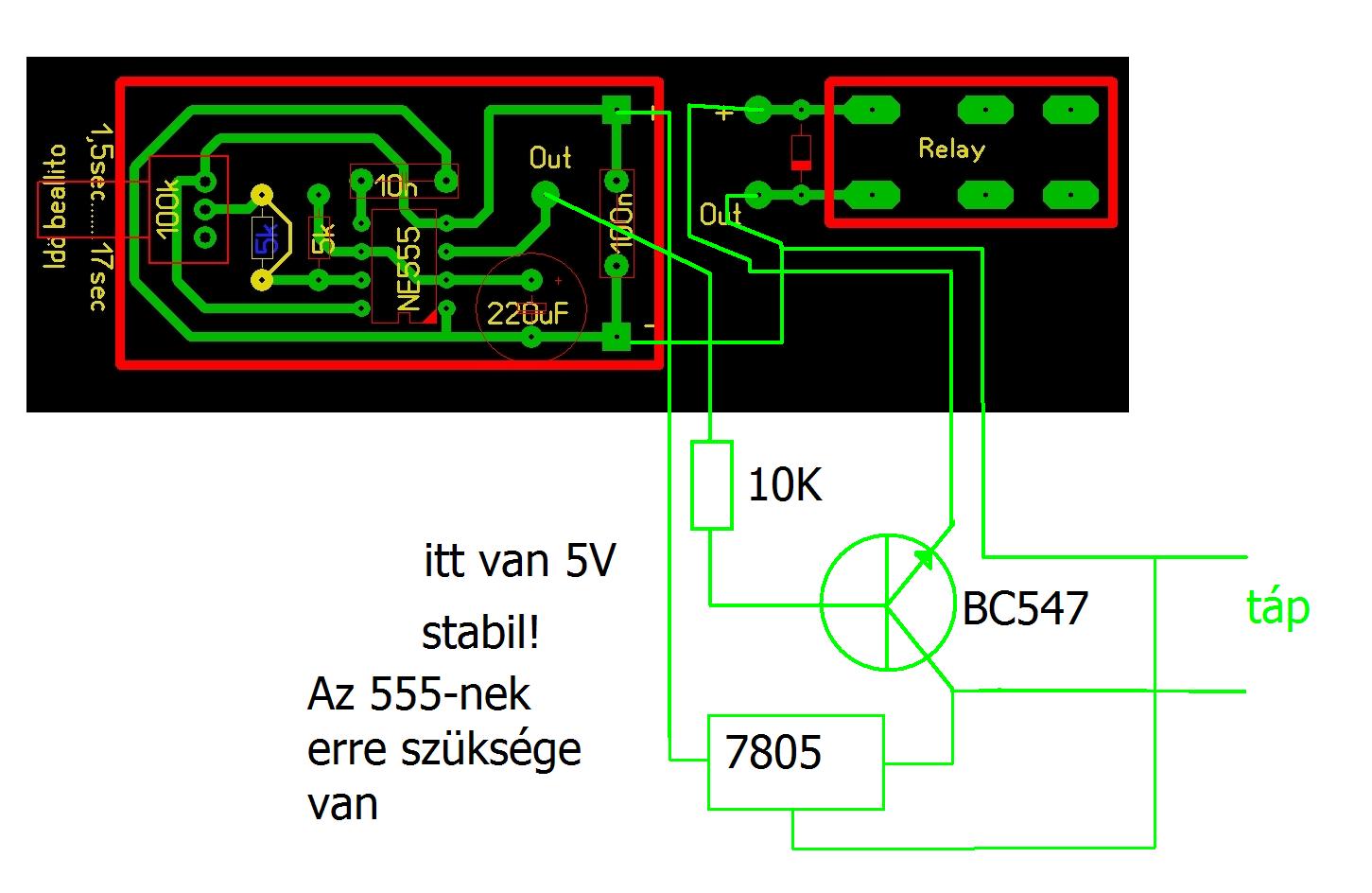 De az 555 kimenetére is lehet tranzisztort illetve relét kötni.