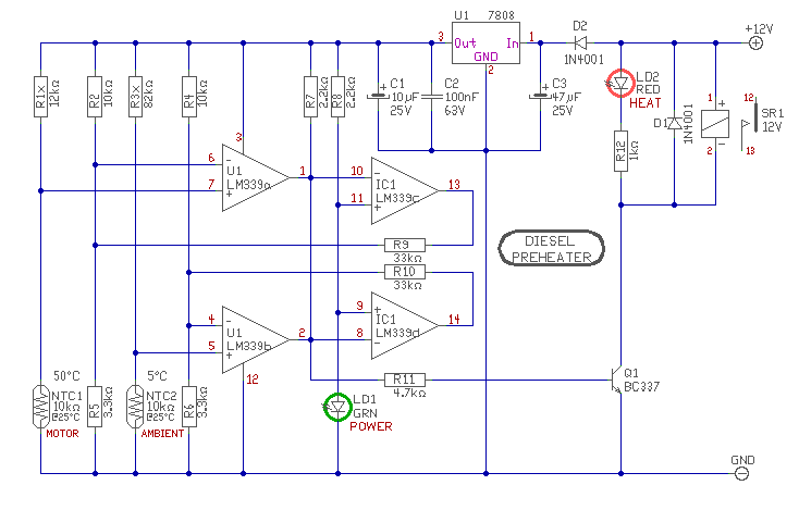 Nem tudom jó helyen keresgélek-e de ezt az oldalt ajánlották. Egy kapcsolási rajzra lenne szükségem ami egy tdi motor előmelegítőjét kapcsolja. 3 darab izzítógyertyáról van szó. Az elektronikának pedig úgy kellene működni hogy gyújtás után kap áramot, amennyiben a külső hőmérséklet (mondjuk) 5fok, a motor hűtővizének hőmérséklete pedig alacsonyabb mint 50 fok akkor kapcsolja az előmelegítőt. Ha a kettő közül bármelyik nem teljesül, tehát vagy melegebb van mint 5 fok, vagy a motor melegebb mint 50 fok, akkor nem csinál semmit sem. Valaki tudna ebben segíteni nekem? Előre is köszönöm!!!