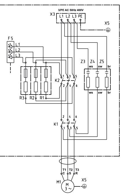 Ezzel sajnos nem tudtam mit kezdeni. Azt jól látom, hogy a K1,2 nyitott állapotában ezek ott vannak a motor kapcsain és amikor a kontaktorok meghúnak akkor ezek is söntölve lesznek?