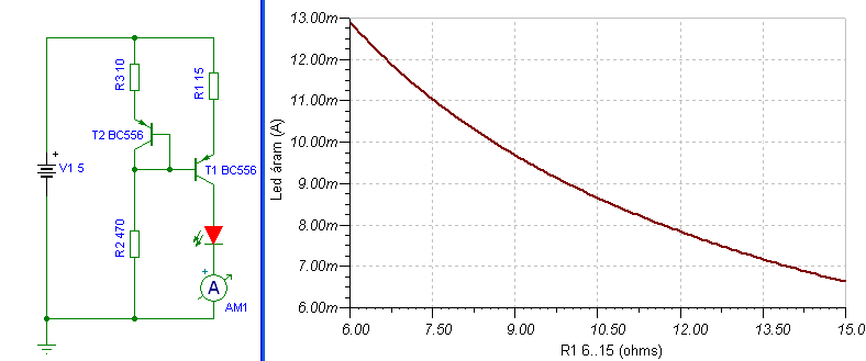 Szia! Megépítettem vagyis csak szimulátorban de nem megy. A szimulátorban BC 547-548 al próbáltam mert csak olyan van benne. De a led sem gyúl ki. Hol lehet a hiba? Üdv!