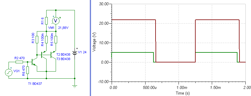 Hello! Ezzel a két tranyóval necces, de megoldható. Mert a határadata a 4A. Így nemlehet egy, és áramkiegyenlítés is kell. üdv!