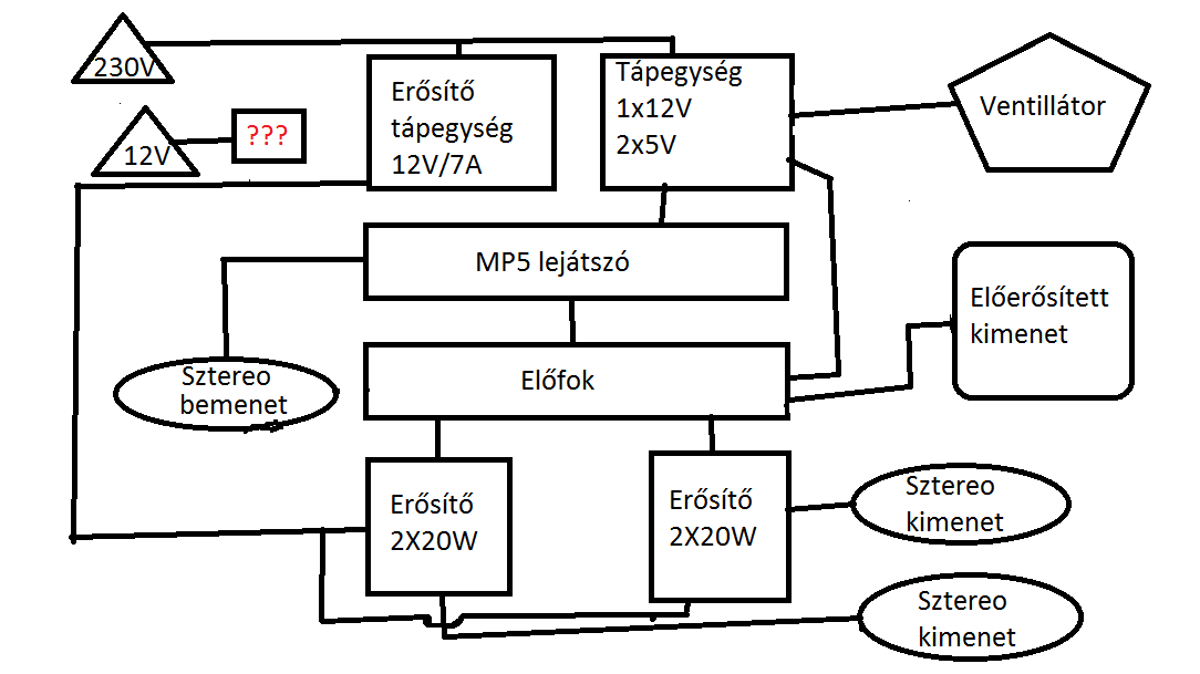 Belefogtam egy 230V/12V használatú hordozható MP5 lejátszós erősítőbe. A 230V-os része már kész van: Erősítők, hangszínszabályzó, MP5 lejátszó, stabil 12V/5V/5V tápegység, erősítők puffer része.