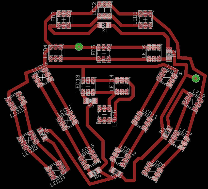 Anno mikor a kapcsolást rajzoltam, kértem segítséget az Eagle topicban, de annyi választ kaptam, hogy válasszak akármilyen 5050-es LED-et. Nos, én csak az RGB-t találtam meg. Mellékeltem a nyákrajzot.