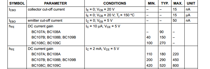 Hello! A BC109 adatlapja, lévén hogy régi tranyóról van szó, nem túl bőbeszédű de..