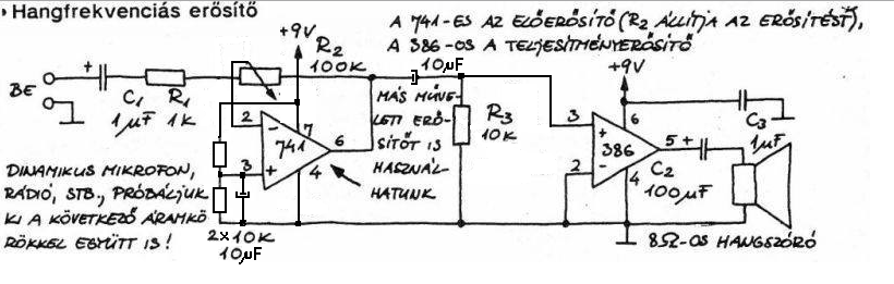 - Az első fokozat erősítését az R2/R1 határozza meg. - A második poti helyett elvileg nem kell semmi, rá lehet kötni az IC kimenetére. - De ha minden erősítést állító potit kiveszel, mivel fogod hozzáállítani a mikrofonhoz? - A piezo alatt Elektret mikrofont értesz? Mer az ide közvetlen nem kapcsolhatod, minimum munkaellenállás kell számára. - Azt tudod-e, hogy két 9V-os elem van benne, amiből az erősítő csak az egyiket használja? A másik csak a műveleti erősítő miatt kell.. üdv!