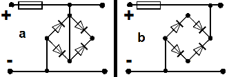 Rajzoltam 2 ábrát, a és b, szerint bekötve esetleg valahogy működne-e a dolog? (A tokon belül a párhuzamosan kötött 2 dióda elvileg dupla áramot bír, az 1db-hoz képest ) Illetve ha működhet, akkor az a vagy b bekötés lenne-e jobb?Vagy inkább 100A-es diódában gondolkodjak?