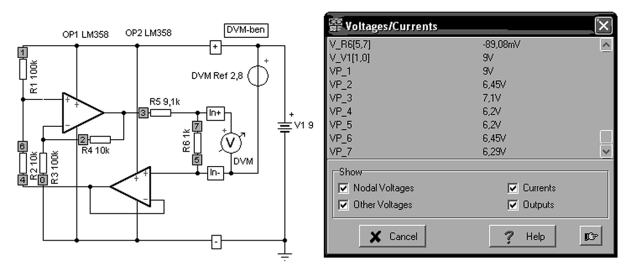 Hello! Ez a kapcsolás csak a DVM-el együtt működik. Mert onnan kapja a referencia feszültségét az In- pontról. Mérni a kimenti jelet is ehhez képest kell..