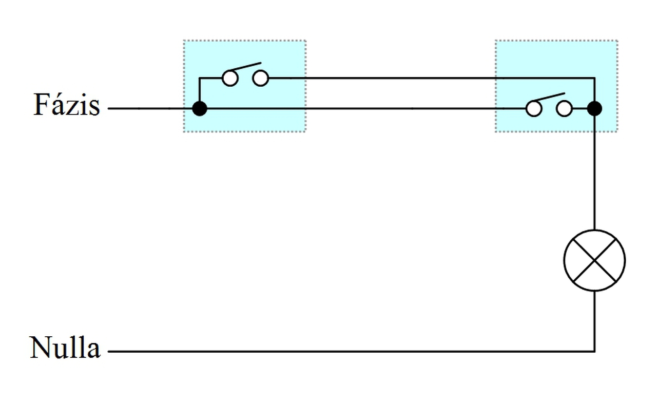 Természetesen, a relékkel párhuzamosítva lehetne sima egysarkú kapcsolókkal 'kézi-vezérléssel' is felkapcsolni, DE nem lehetne lekapcsolni csak ott ahol felkapcsoltad.