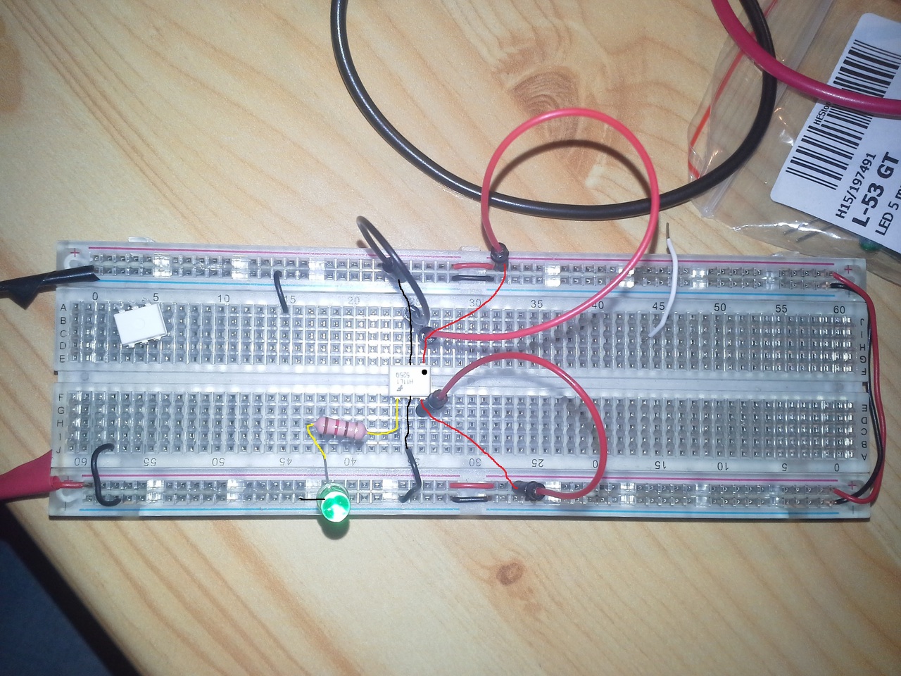 Próbálok működésre bírni egy H11L1M optocsatolót, de nem sok sikerrel. A mellékelt képen látható a próbapanelen összedugdosott áramkör. "Számításaim" szerint ebben az állapotban a lednek égnie kéne, de nem így tesz. A feszültség 5V. Mit rontok el? A hozzászólás módosítva: Feb 26, 2016