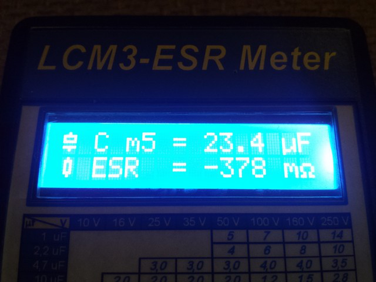 Az LCM3 rosszul van kalibrálva, hiszen az ESR nem lehet negatív érték. Kalibráld újra és utána mérd meg a kondenzátort. De ha a 378 mΩ értéket nézem, az nem rossz érték.