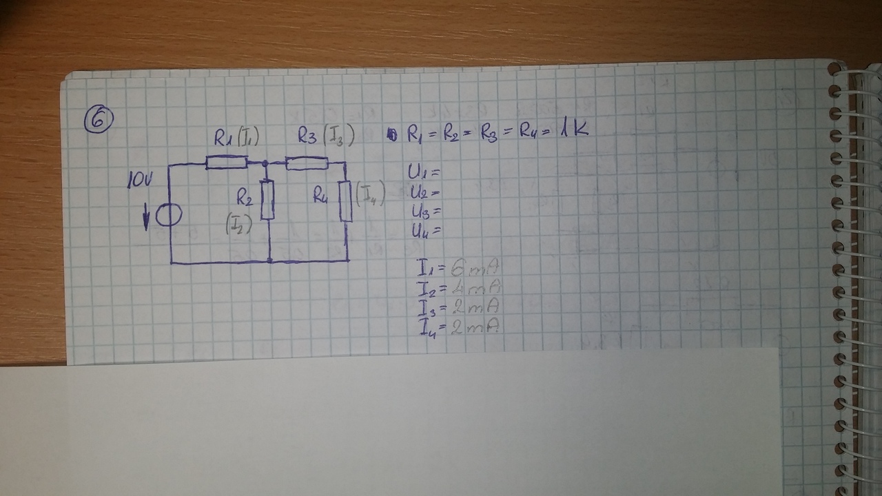 Nekem ezek az áramok jöttek ki. És U1 = 6 V; U2 = 4 V; U3 = U4 = 2V.