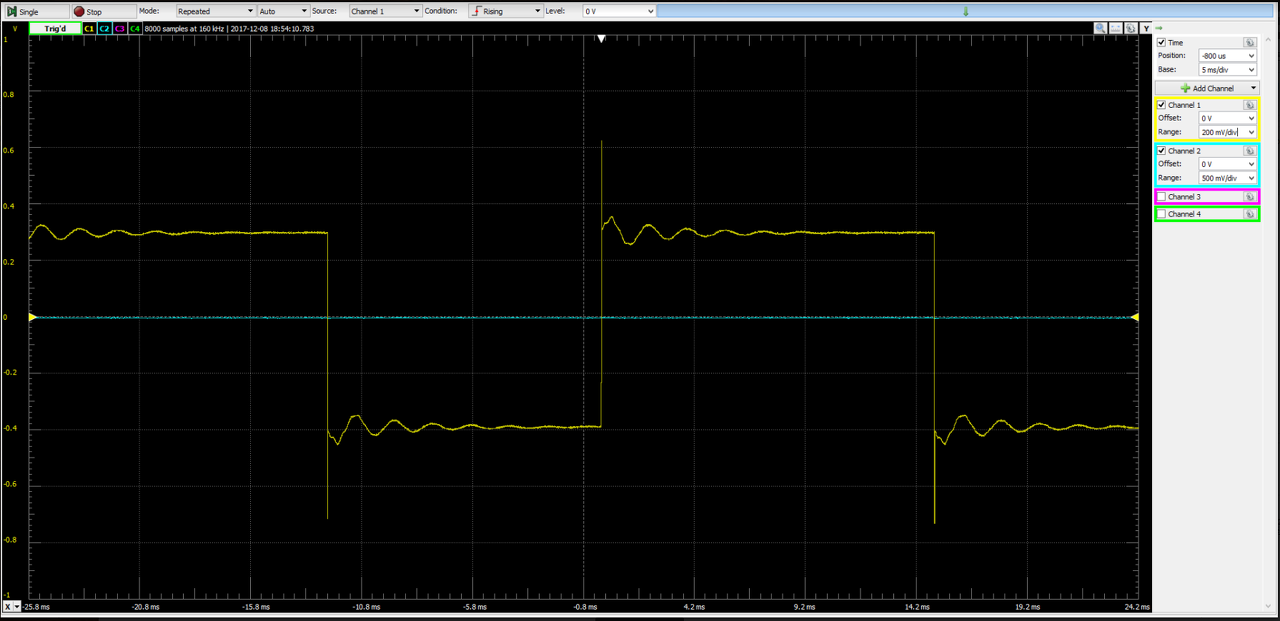 Csatolnék egy mérési képet, amin az látható, hogy szabályos négyszögjellel hajtok meg egy hangszórót. A kérdésem az lenne, hogy mi a jelenség neve és mi okozza a négyszögjel felfutása után látható hullámot. Ha jól tudom, a hangszóró tekercse okozza, de ezt kellene szépen megfogalmaznom. Előre is köszi, Ádám.